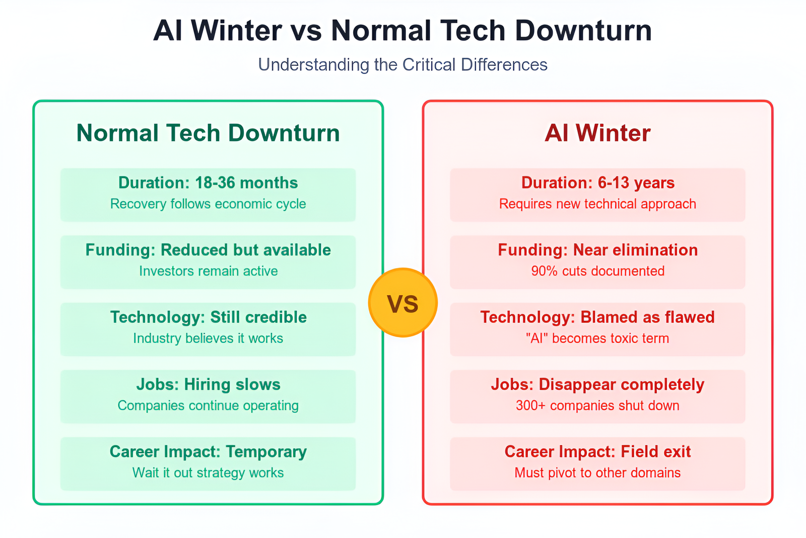 | Aspect | Regular Downturn | AI Winter |