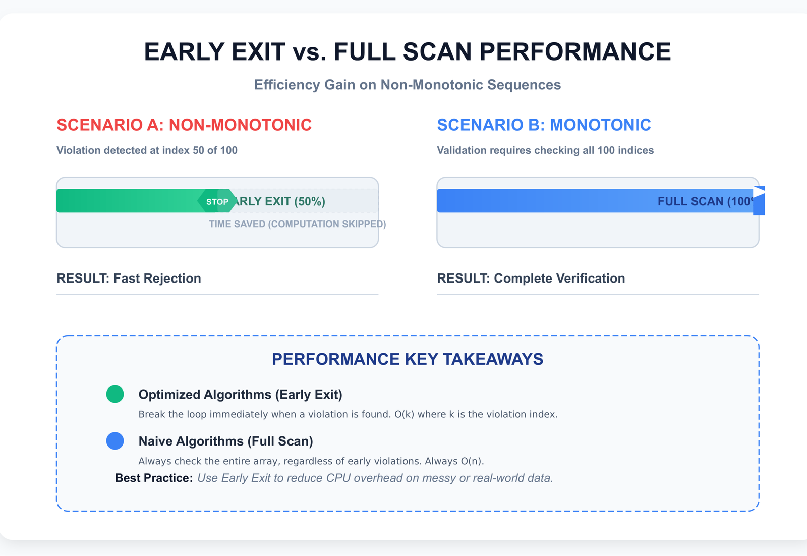 You have a list of stock prices over time, temperature readings from a sensor, or model loss values during training. You need to verify if the data is trending consistently in one direction. The naive approach most developers reach for — sorting the list and comparing it with the original — works, but it is unnecessarily slow and creates a full copy of your data in memory.