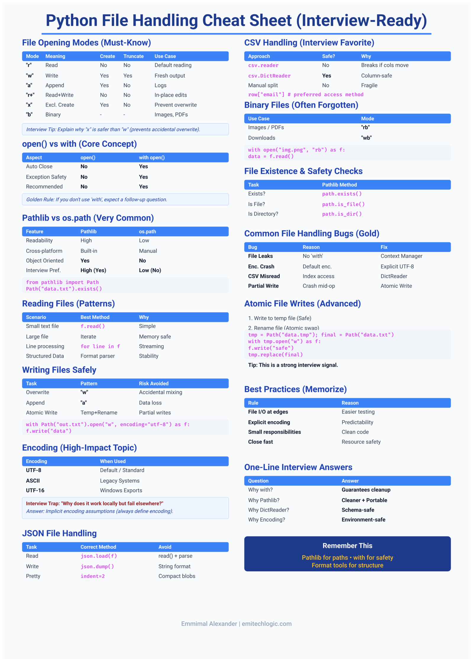 If this post changed even one small habit—adding an explicit encoding, stopping index-based CSV access, or never opening a file outside a context manager—then it’s already doing its job.